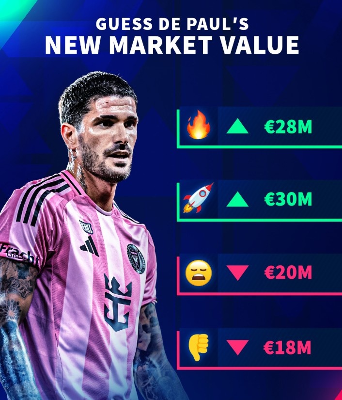 9月12日讯 德国转会市场宣布,将在9月12日更新美职联球员的身价,并预告了今夏加盟迈阿密的德保罗。